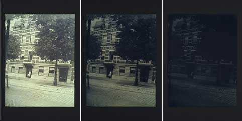 Tages filmt sie die Fotografie einer Häuserwand. Dabei rafft sie dramaturgisch die Auf
